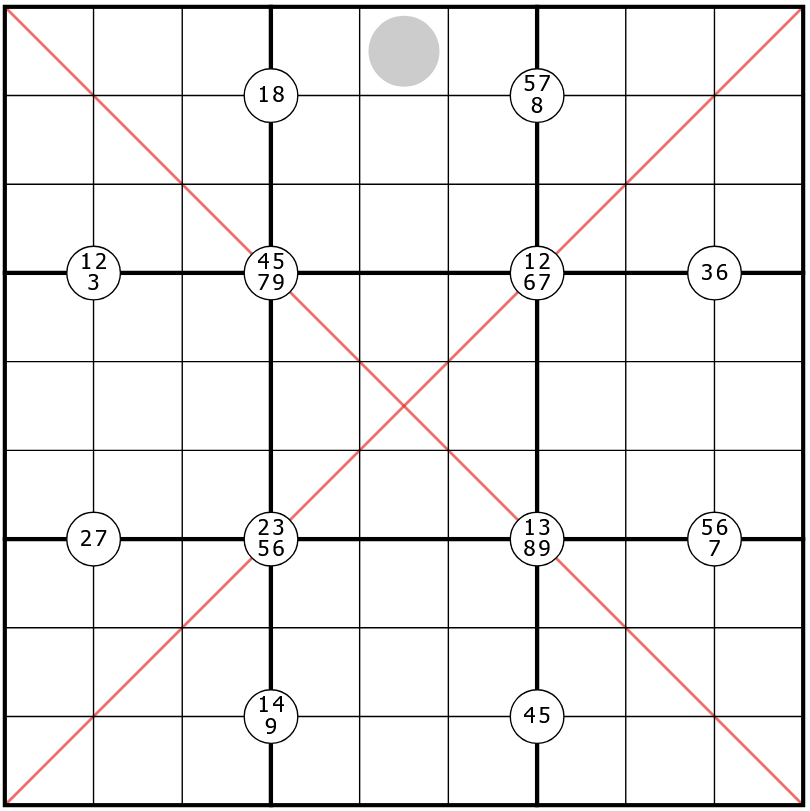• Quadruples: Digits in a Quadruple circle must be placed at least once in the four cells touching that circle.