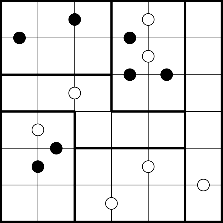 Negative constraint: All dots within a region are given.