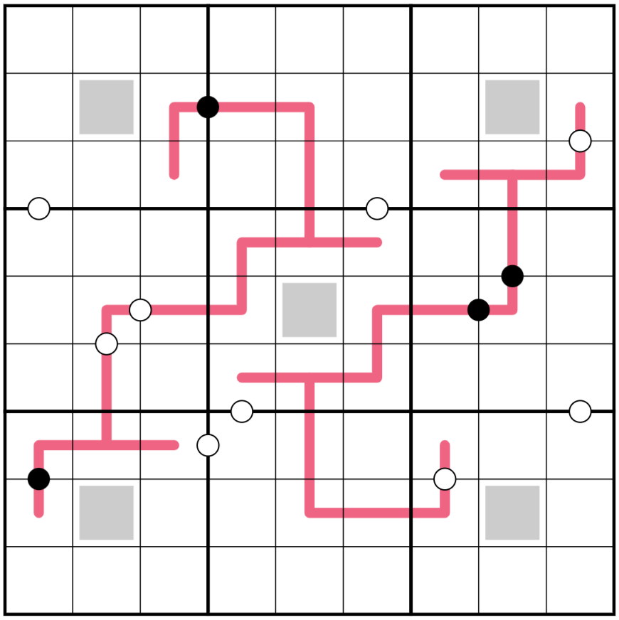 This was fun! I enjoyed the concept of the red lines, and kinda wish it took longer to figure out what the set of numbers was for each. Still, puzzle certainly didn't disappoint, engaging all throughout.