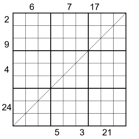 • Sandwich: The numbers outside the grid give the sum of the digits between the 1 and the 9 in that row or column.