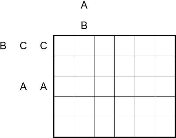 • All outside clues have been ciphered, i.e. the letters A, B and C each represent a different digit from 0-3.