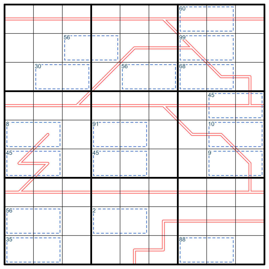 So sujoyku launched a prompt to make puzzles using addition and multiplication, and here I implemented region product lines and multiplicative cages along with adder modifiers as introduced by Silverstep's On The Bottom Shelf.