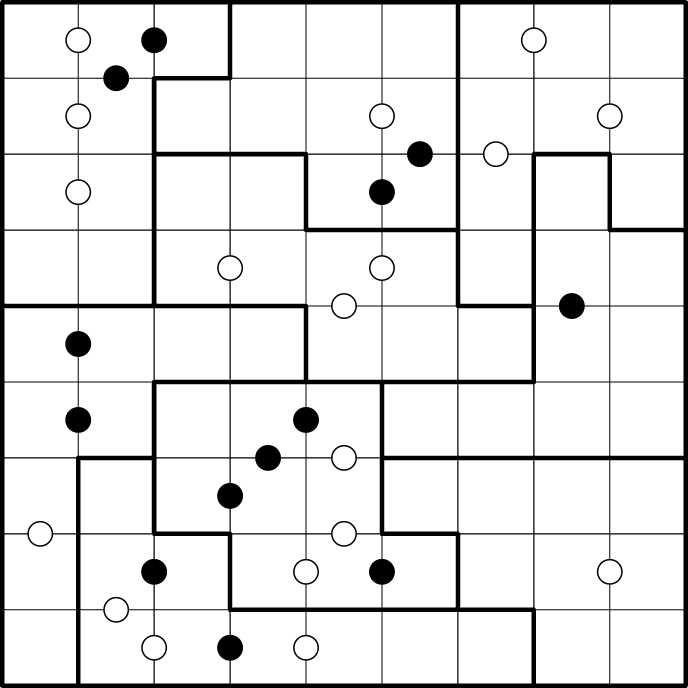 Note: If it occurs in the grid, within a region, a pair of 1-2 will be marked with either a black or white dot.