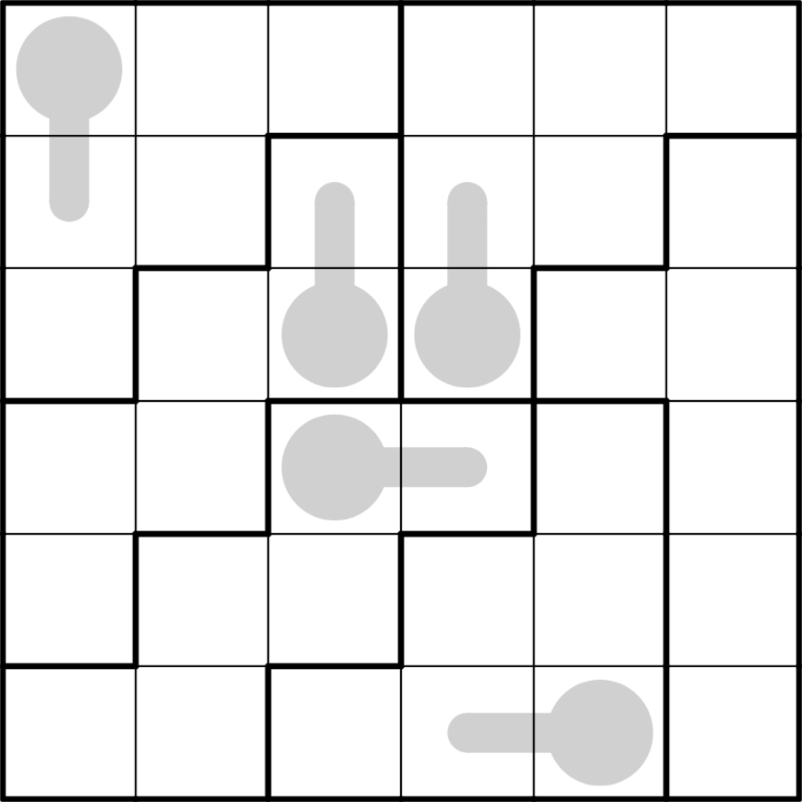 Irregular 6x6 sudoku rules apply. Place the digits 1 to 6 once in every row, column and bold outlined region.