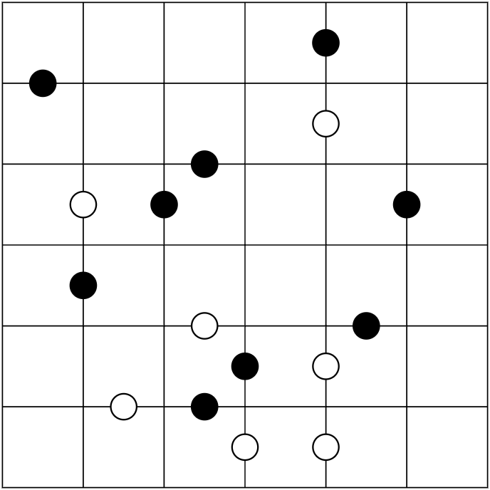 Kropki Dots: Black dots indicate cells with a 2:1 ratio. White dots indicate cells with consecutive digits.