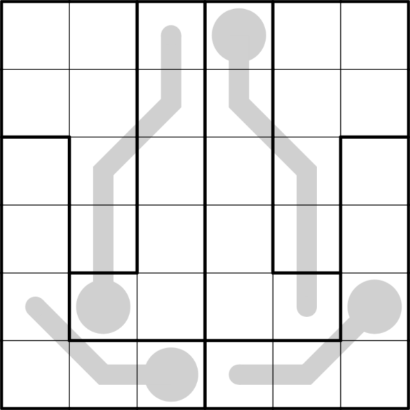 Irregular 6x6 sudoku rules apply. Place the digits 1 to 6 once in every row, column and bold outlined region.