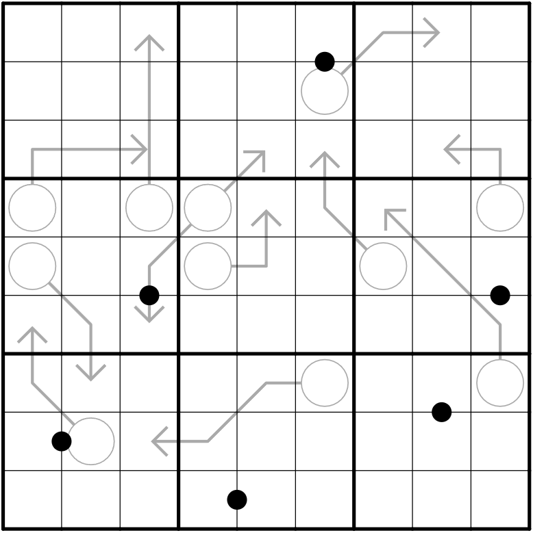 This was my first time working in sudokumaker, and have now used most setting tools for sudoku (that I could find). I think I have an idea what they are each best suited for. After setting this puzzle I had someone playtest it, and they said they absolutely hated arrow puzzles. So I hope this puzzle finds its place here. With the Lost in the jungle puzzles I want to introduce a constraint with a small and somewhat simple break-in and resolution. I hope this puzzle fits that line.