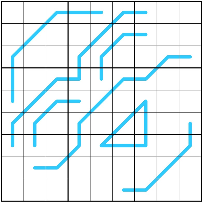 Box-Grenzen unterteilen jede blaue Linie in Segmente mit gleicher Summe.