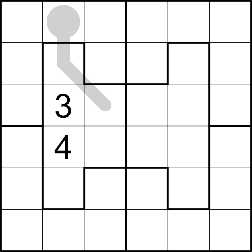 Every pair of cells that are a Chess Knights move apart and are in the same region must have consecutive digits.