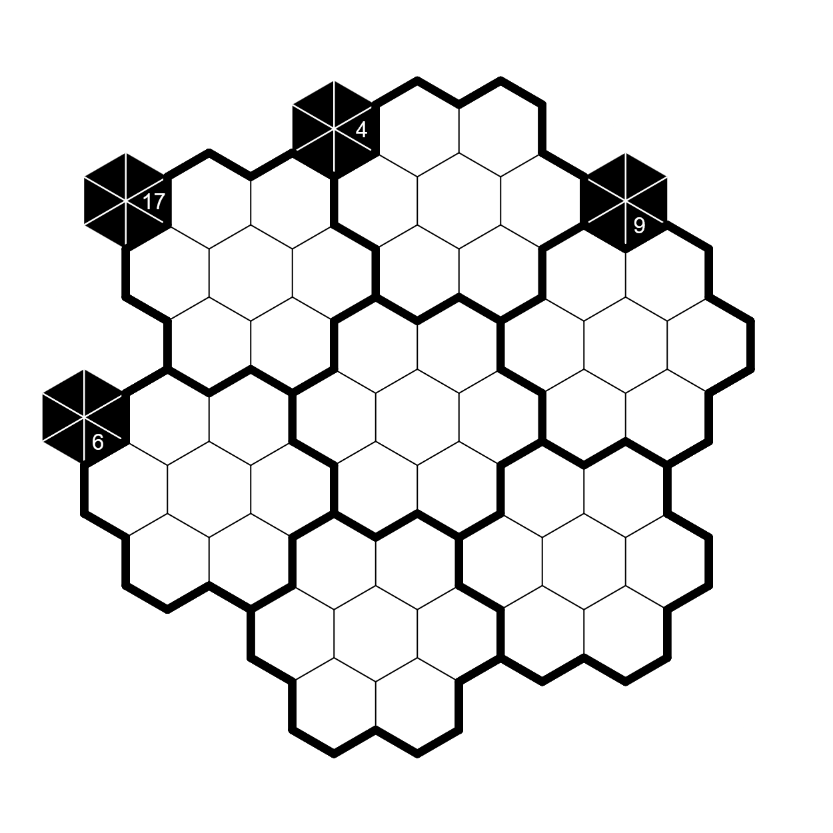 • Digits cannot repeat along any of the three directions in which the hexagonal cells share edges.