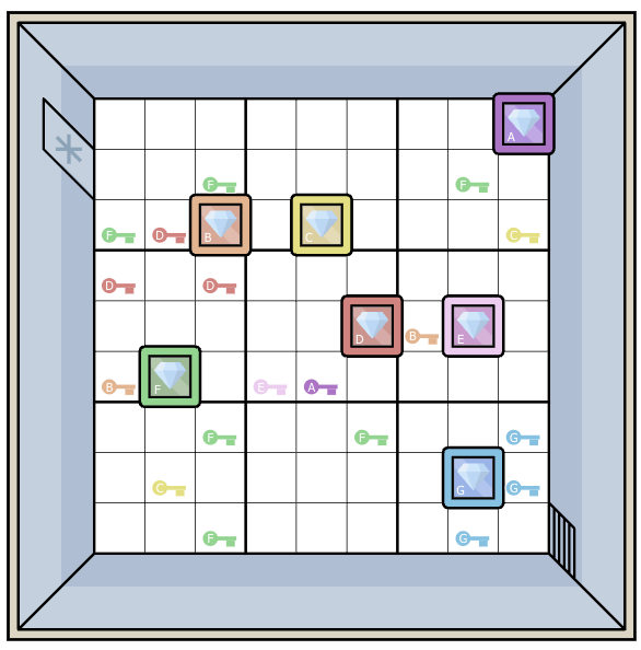 Getting the diamonds and the keys was easy enough, but plotting the path took me too long unfortunately - 64 minutes in total - so the police was waiting for me as I escaped.