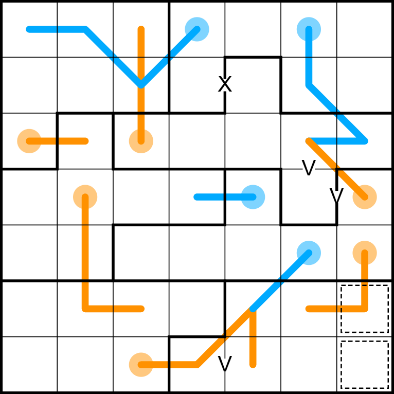 All X's and V's are given.