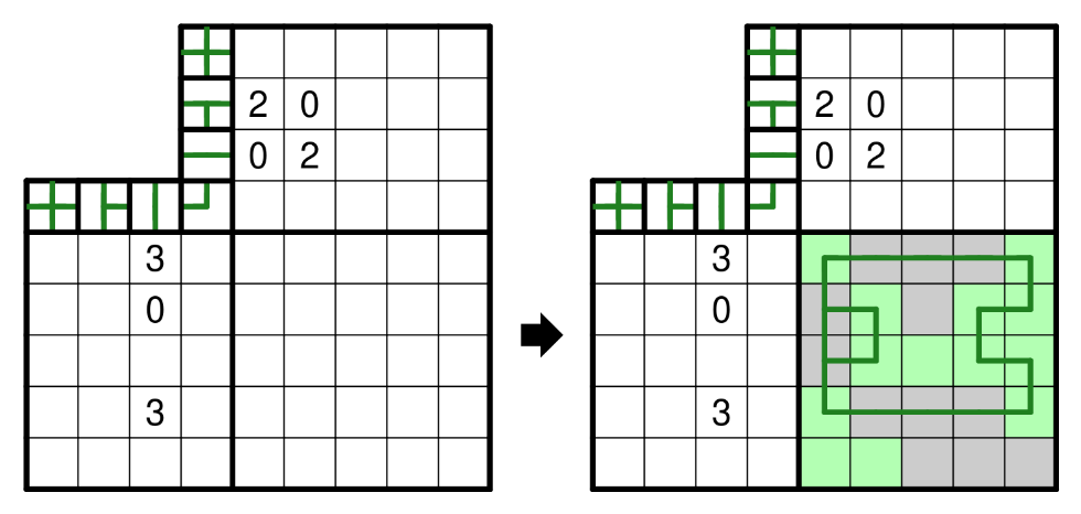 Lösungscode: The number of shaded cells in each row, from top to bottom. (For the example puzzle, the solution code would be 32133.)