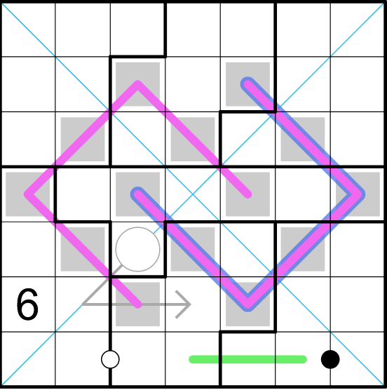 • Numbers on the purple lines and on the main diagonals may not repeat.