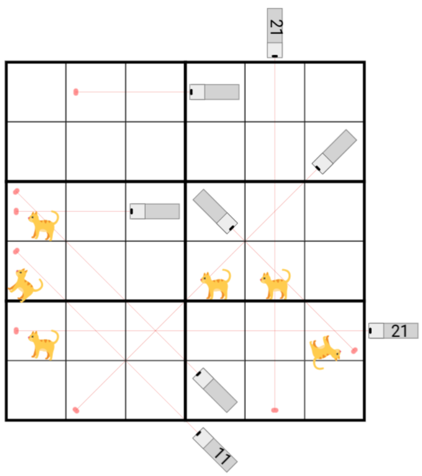 CATS - *Exactly one* of the cats is a copycat. The value of the copycat is the digit in the cell rotationally opposite itself in the grid (e.g. a copy cat in r2c3 would have the value of the digit in r5c4). Other cats do absolutely nothing (they just can't be bothered).
