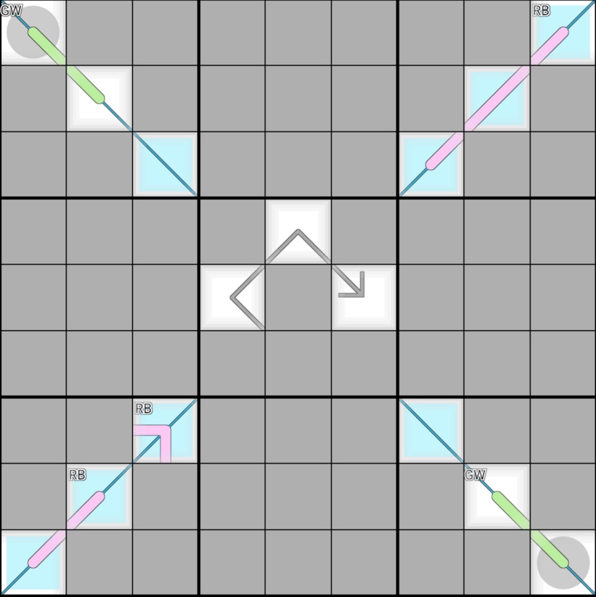 Each constraint type may contain no repeated digits anywhere in this puzzle. Eg. If one renban line contains a 5, then no other renban line may contain a 5.