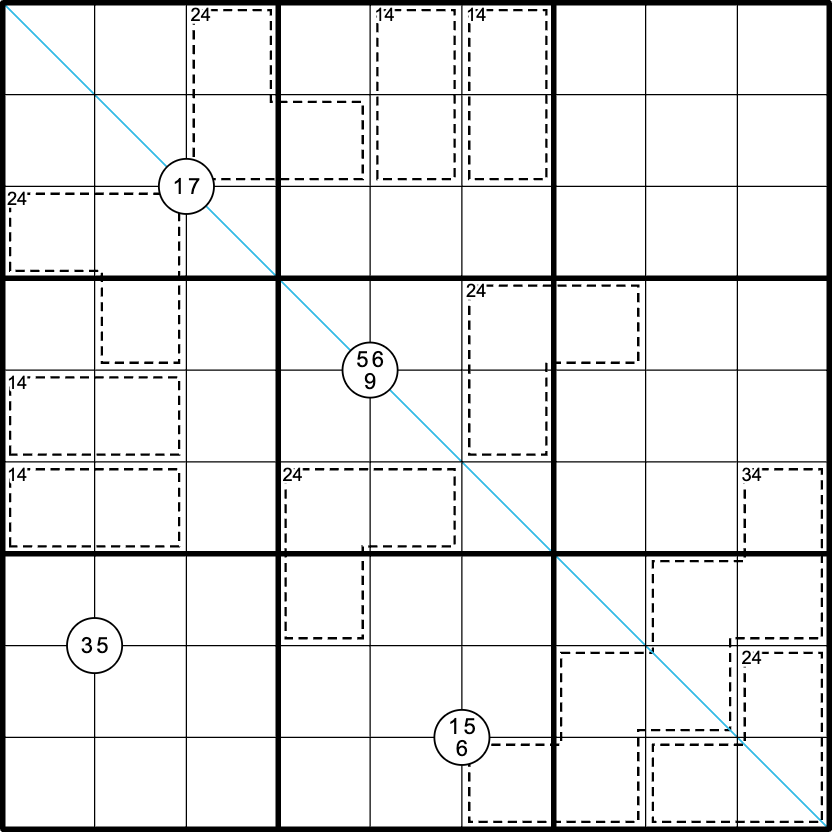 Cages: Cages are either killer cages, where the digits do not repeat and sum to the clue, or Look-and-say cages where the clue indicates how many times the digit appears in the cage. I.e a 14 means there is one 4 in the cage. Digits can repeat in look-and-say cages.