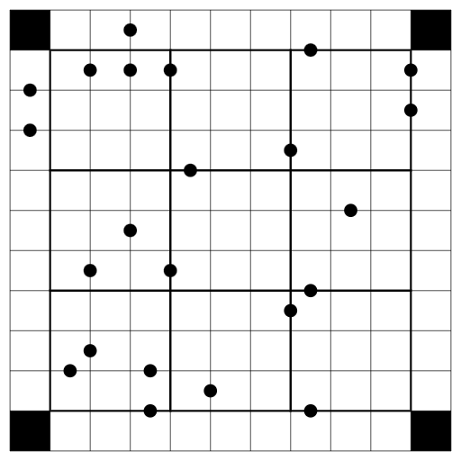 Once I figured out what I was doing, however, it was a lot of fun! I really liked playing with the "all possible dots are given" bit and the skyscraper squares.
