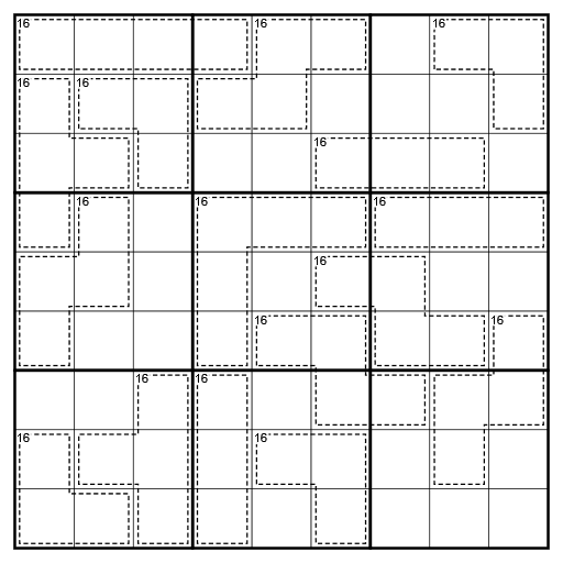- Killer-Käfige: Ziffern in einem Käfig dürfen sich nicht wiederholen und addieren sich zu 16.