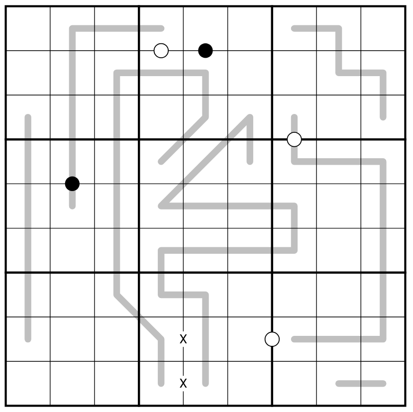 ENTROPIC (GREY): Any set of three sequential cells along a grey line must contain a low digit (1,2,3), middle digit (4,5,6) and high digit (7,8,9).