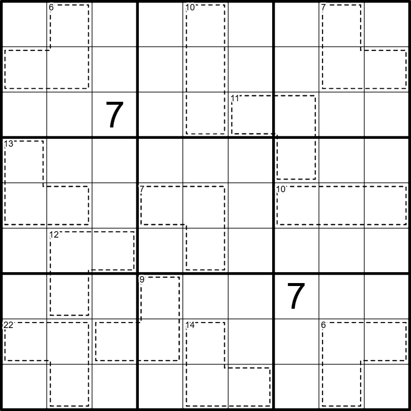 Killer: Digits in a cage sum to the given total. Digits in a cage do not repeat.