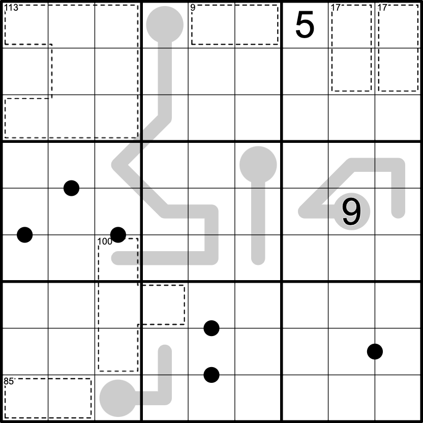 Perfect squares may have a value that is either their square root or are themselves squared. Ex: If 25 were a sudoku number, it could either be 5 or 625. In every 3x3 box, there is one square root and one squared square. The smallest of possible squares takes up one of these slots only thrice.