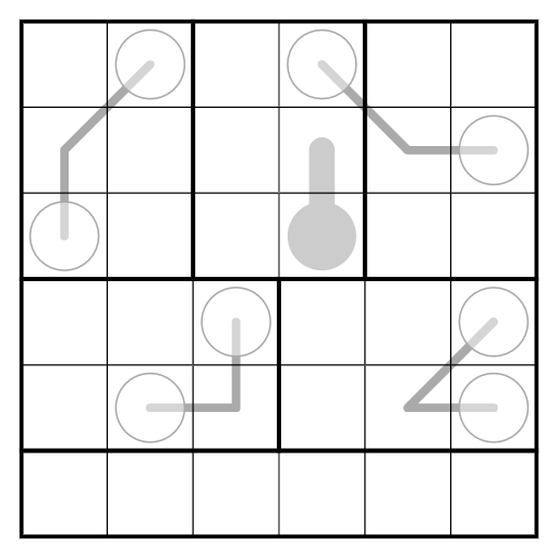 Irregular 6x6 sudoku rules apply. Place the digits 1 - 6 once in every row, column and bold outlined region.