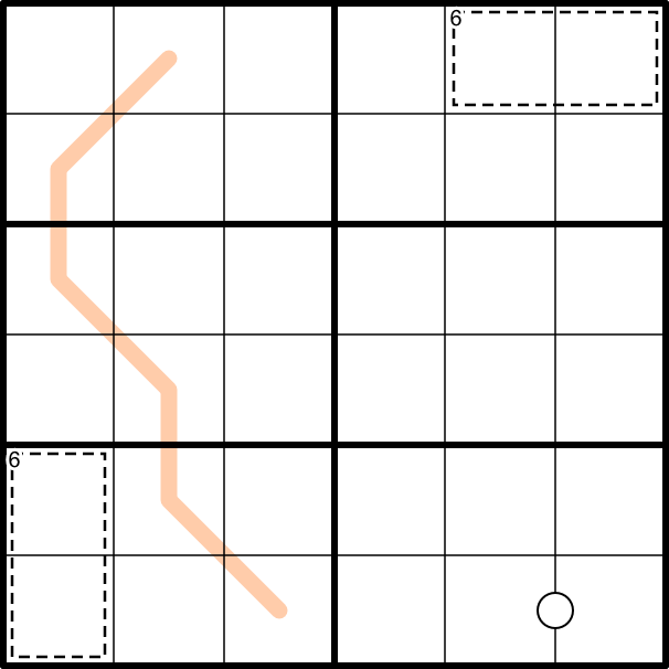- Normal 6x6 sudoku rules apply: every row, column and 3x2 box contains the digits 1-6 exactly once each.