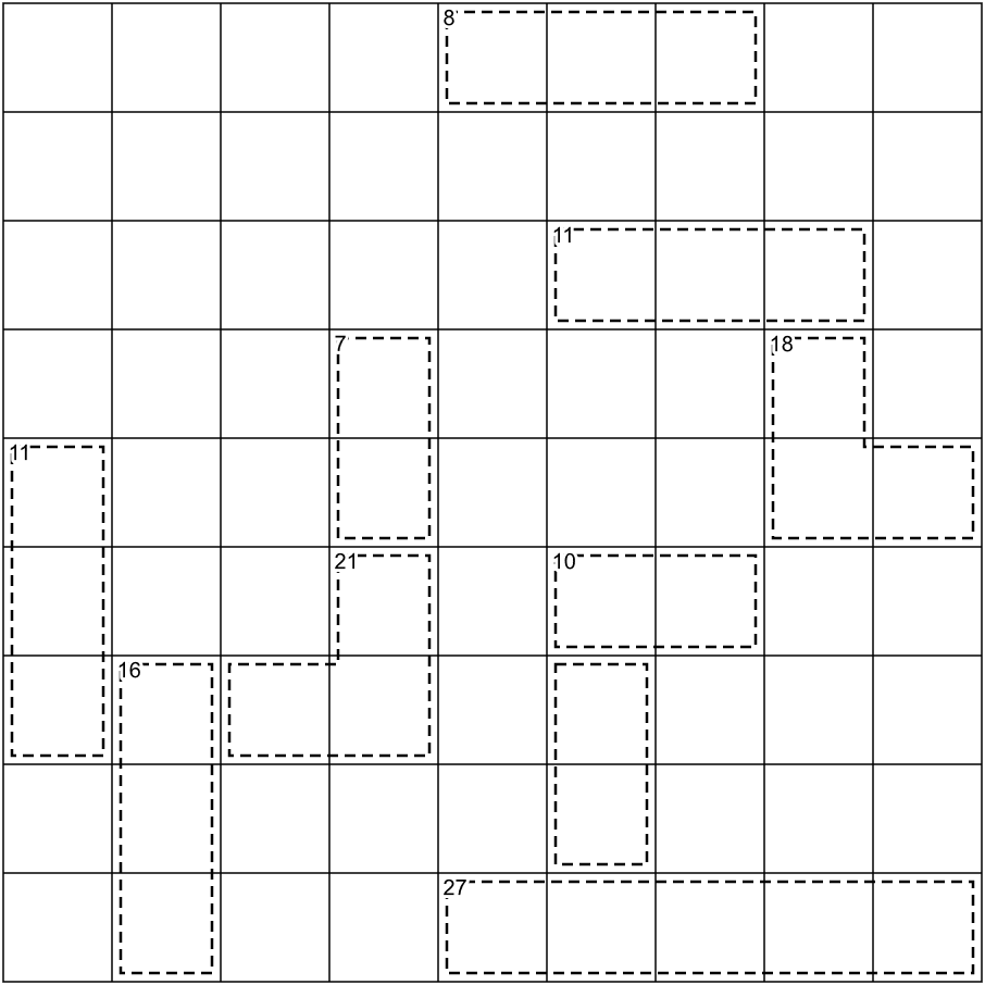 Chaos Construction: Divide the grid into regions, each consisting of nine orthogonally connected cells. Each row, column and region contain the digits 1-9 once each.
