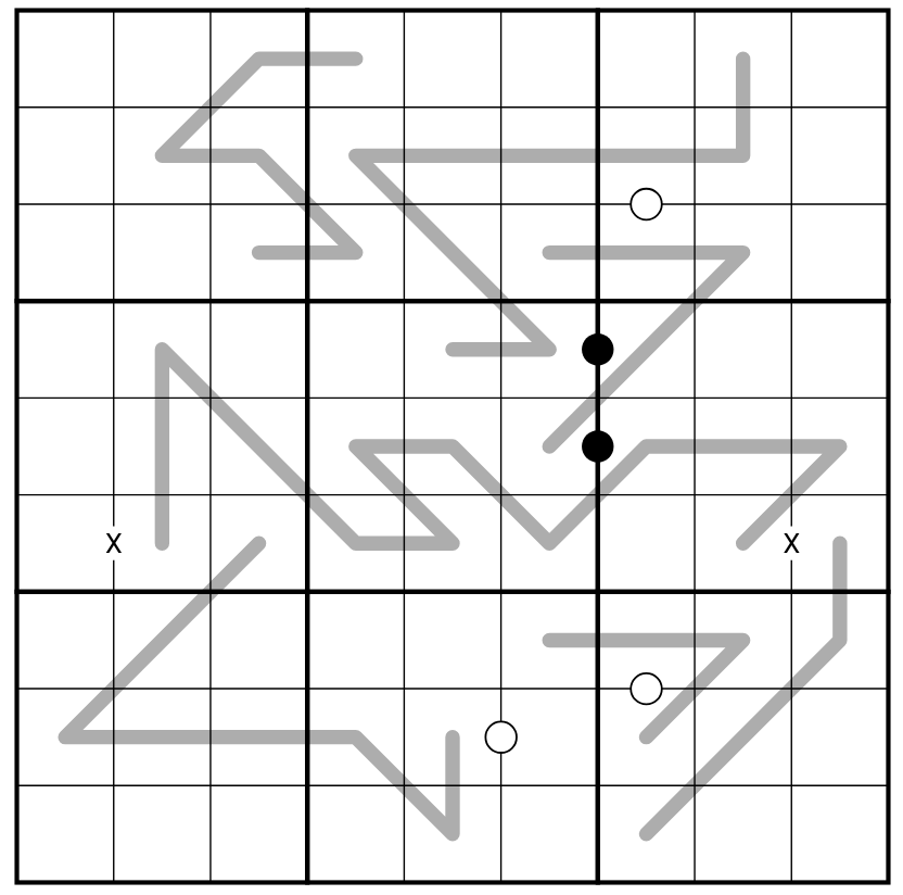 ENTROPIC (GREY): Any set of three sequential cells along a grey line must contain a low digit (1,2,3), middle digit (4,5,6) and high digit (7,8,9).