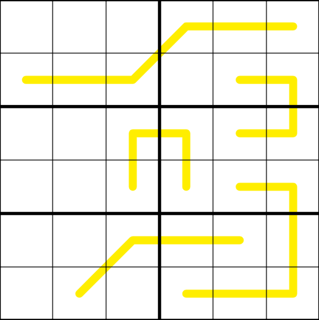 Normal sudoku rules apply. Box borders divide each line into two segments. The product of the digits on one segment equals the sum of the digits on the other segment. e.g. 134 | 156 would work because 1×3×4=1+5+6.
