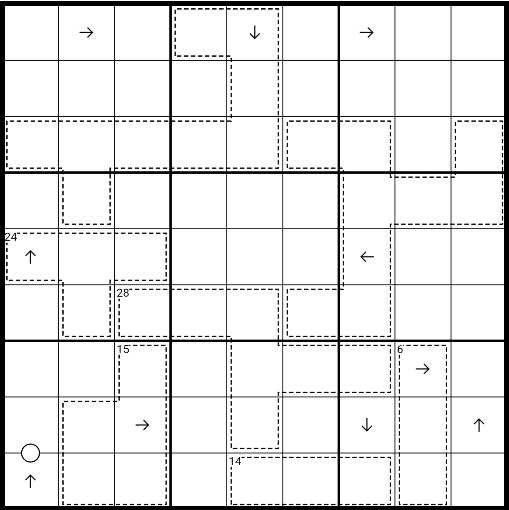 Normal Sudoku rules apply (place a set of the digits [1-9] in each row, column, and 3x3 region).