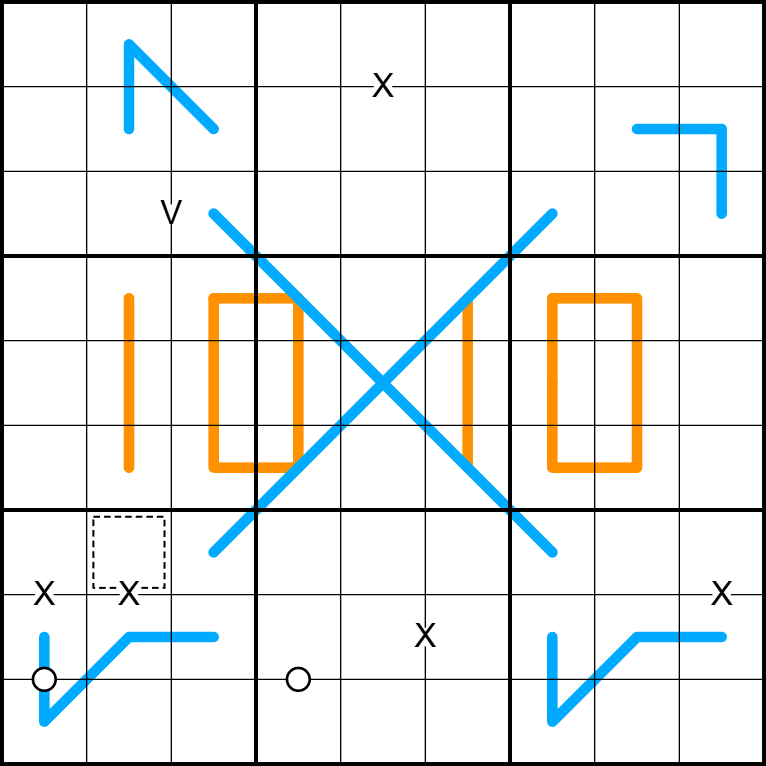 Deadly pattern at the end? I expected the negative XV constraint to resolve that, but it didn't. Rules in sudokupad list an additional constraint acting on cages, which could resolve this but there is no cage drawn in the grid.