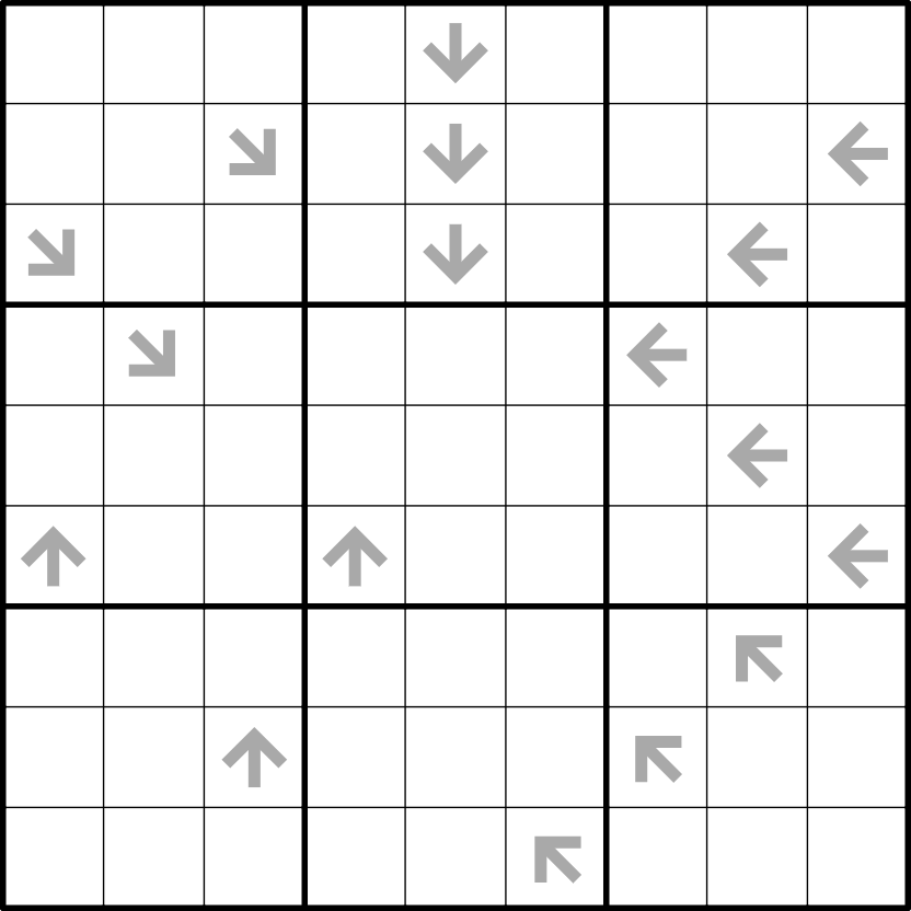 - Skyscrapers: A digit on an arrow indicates the number of visible digits in that direction. A digit is visible only if it is greater than all digits between it and the arrow.