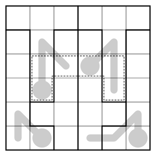 Irregular sudoku rules apply. Place the digits 1 - 6 once in every row, column and bold outlined region.