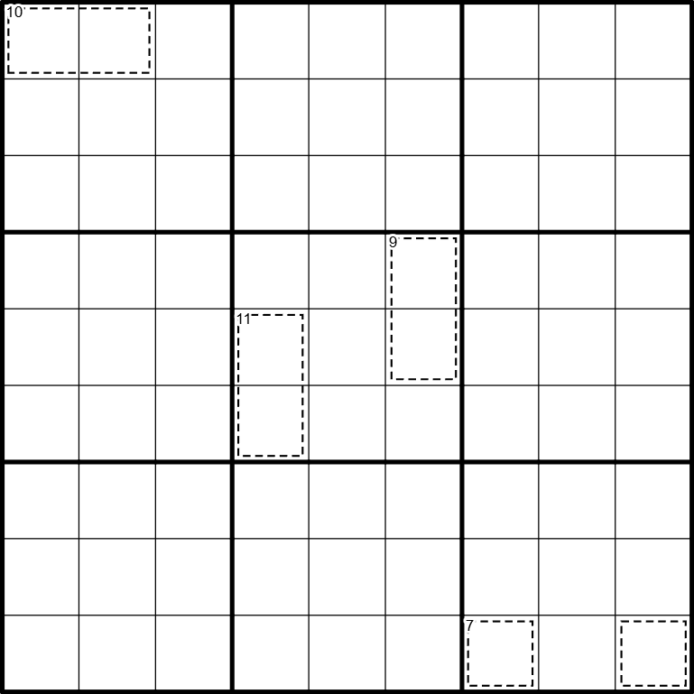 Digits in cages must sum to the number in the top-left corner of the cage. If given.