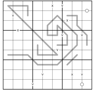Cells connected by an X sum to 10. Not all Xs are necessarily given.