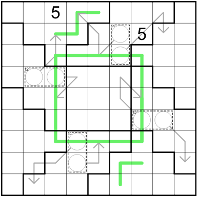 • Digits on a german whisper line must differ by atleast 5 (if the layers get messed up: the line continues through the entirety of the ring enclosing the middle ring).