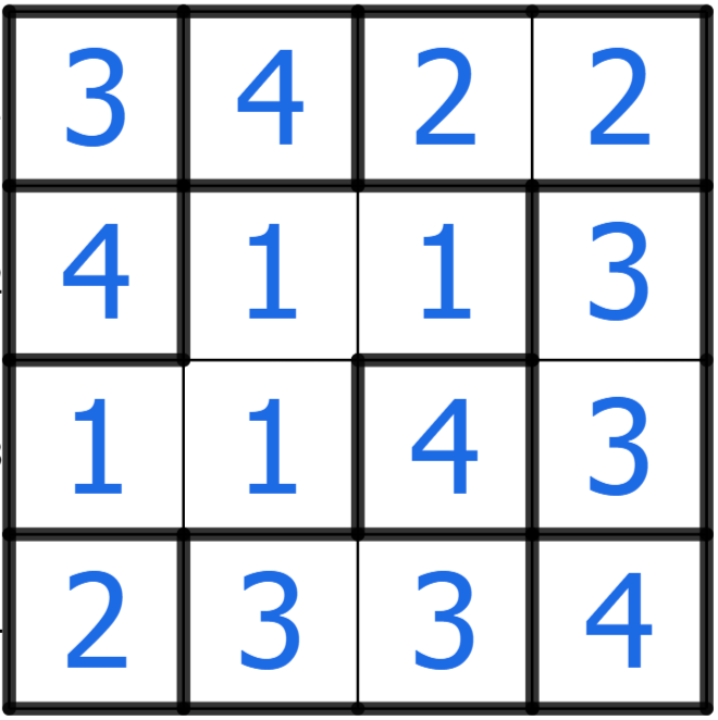 And yes, the counting rule implies that the values are integers from 1 to 4, since a value N greater than 4 will cause a repeat of regions of value N in some row or column.