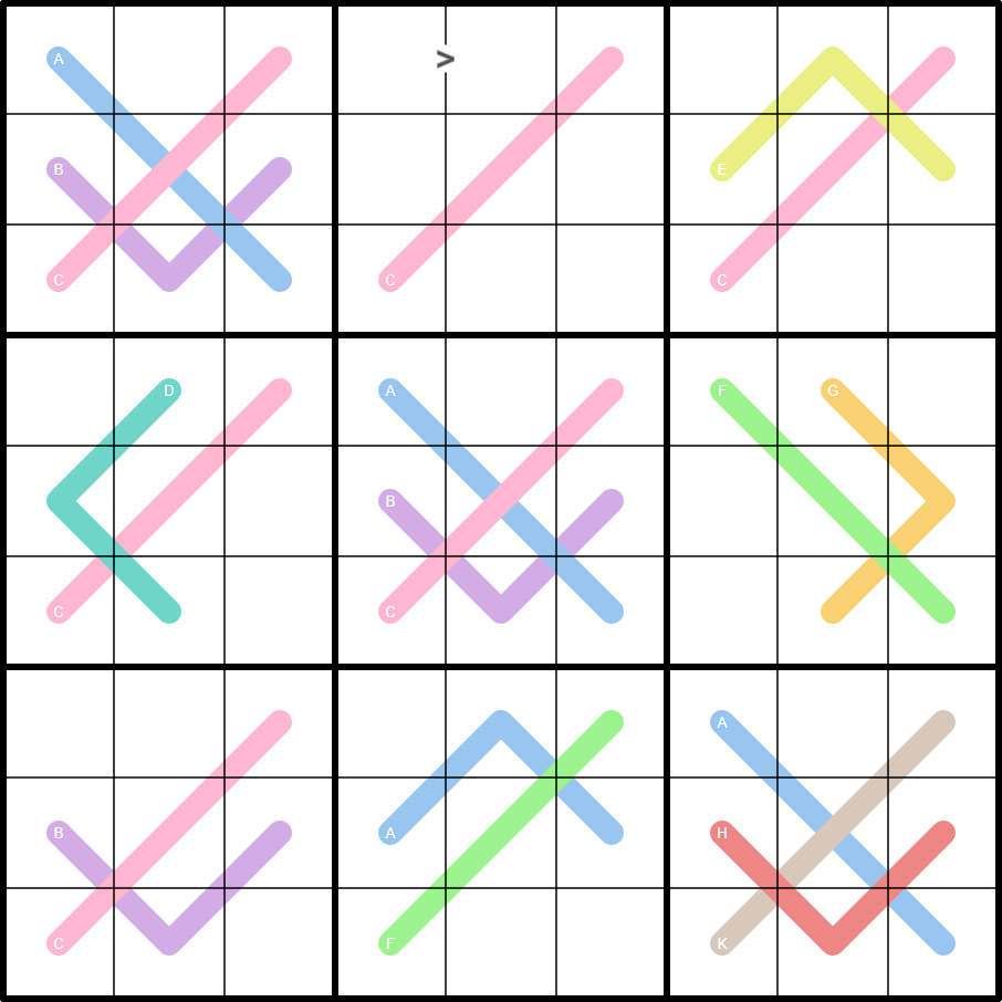 Beautiful grid and a satisfying solve path! Love the line color choices a lot