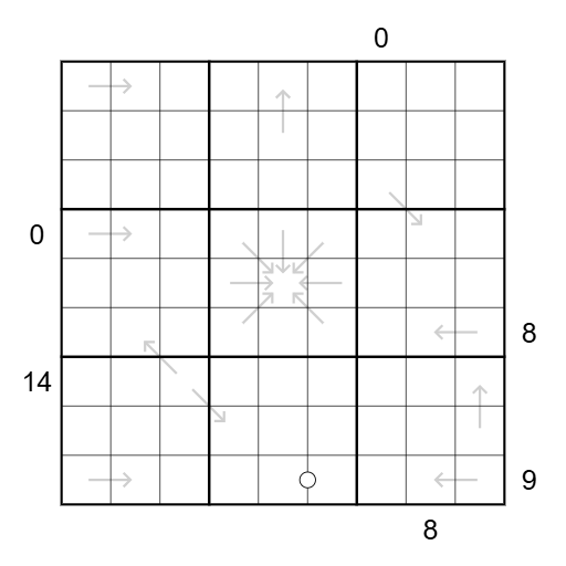 Clues outside the grid equal the sum of all the digits in that row or column sandwiched between the 1&9.