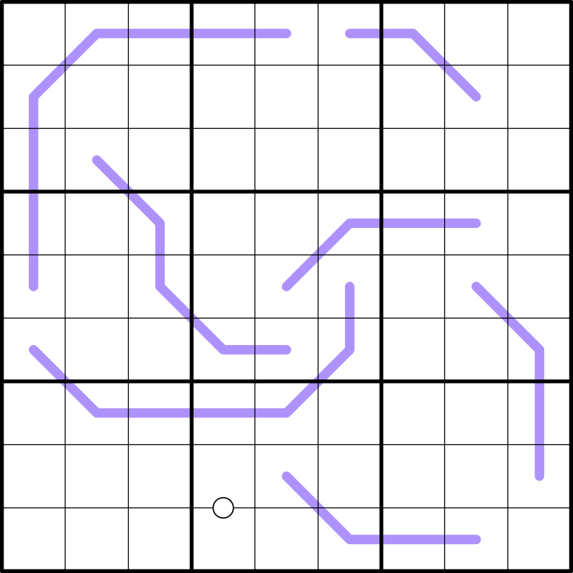 - White Kropki Dot: Digits separated by a White Kropki Dot are consecutive.