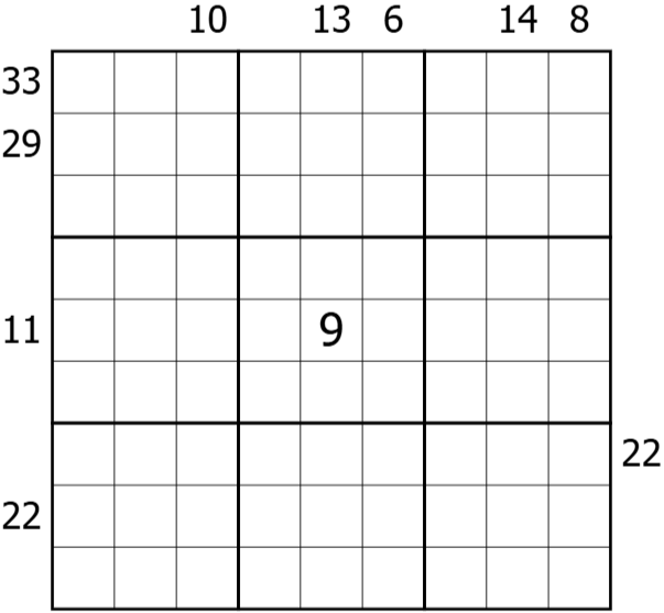In jeder Zeile und Spalte mit Hinweise außerhalb des Gitters liegen zwischen den Ziffern 1 und 9 genau N andere Ziffern, die sogenannten eingeschlossenen Ziffern. Hinweise außerhalb des Gitters geben die Summe aller eingeschlossenen Ziffern in der entsprechenden Zeile oder Spalte an, wobei N die erste dieser eingeschlossenen Ziffern von dieser Seite aus gesehen ist.