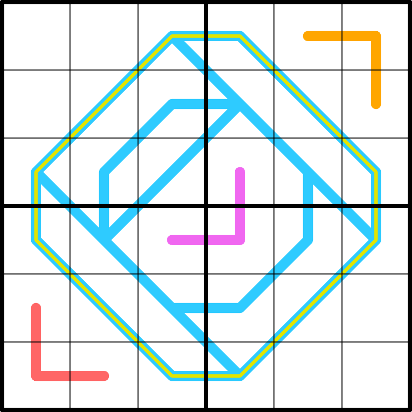 Additionally, the perimeter of this region sum line (marked by a thin yellow line) is a modular line: any three adjacent digits along this line have different residues modulo 3 (i.e. one digit from {1,4,7}, one from {2,5,8}, and one from {3,6,9}).