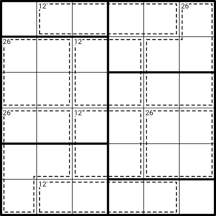 Place the digits 1-9 without repeating a digit in any row, column, or marked region (regions contain 3, 6, or 9 cells).