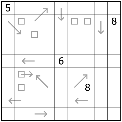 This puzzle was created in response to one of Scojo's Setting Saturday prompts, which was to set a puzzle using the coordinate arrows constraint.