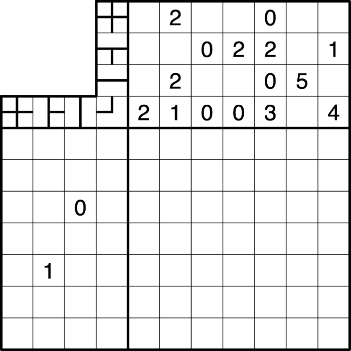 A clue outside the grid indicates how many times the corresponding line shape (i.e. a cross, branch, straight line, or turn) appears in the corresponding row or column, irrespective of the line shape's rotation.