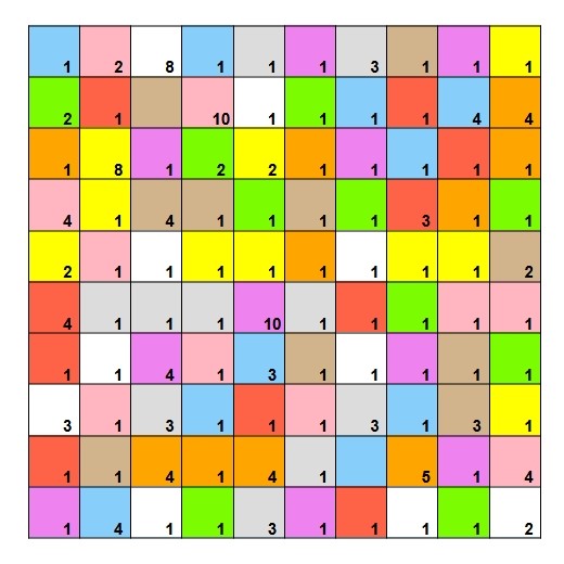 The letters of each word also appear scattered around the square in ten tiles of a single colour (colour to be determined).