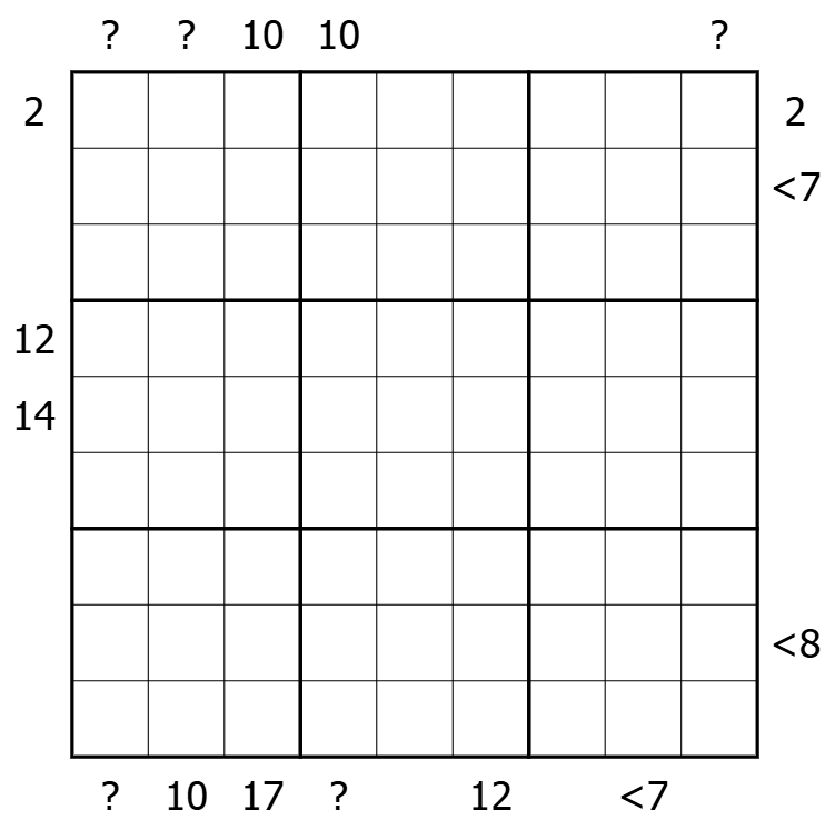 All clues, including "?" and inequality sign, are integers. Unclued places may or may not be integers.