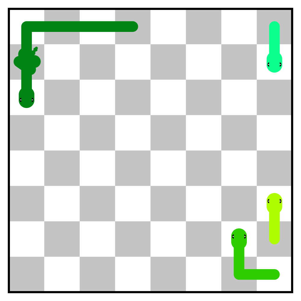 A "snake" is a one-cell wide path that can only move orthogonally, can't touch itself orthogonally, and can't overlap other snakes.